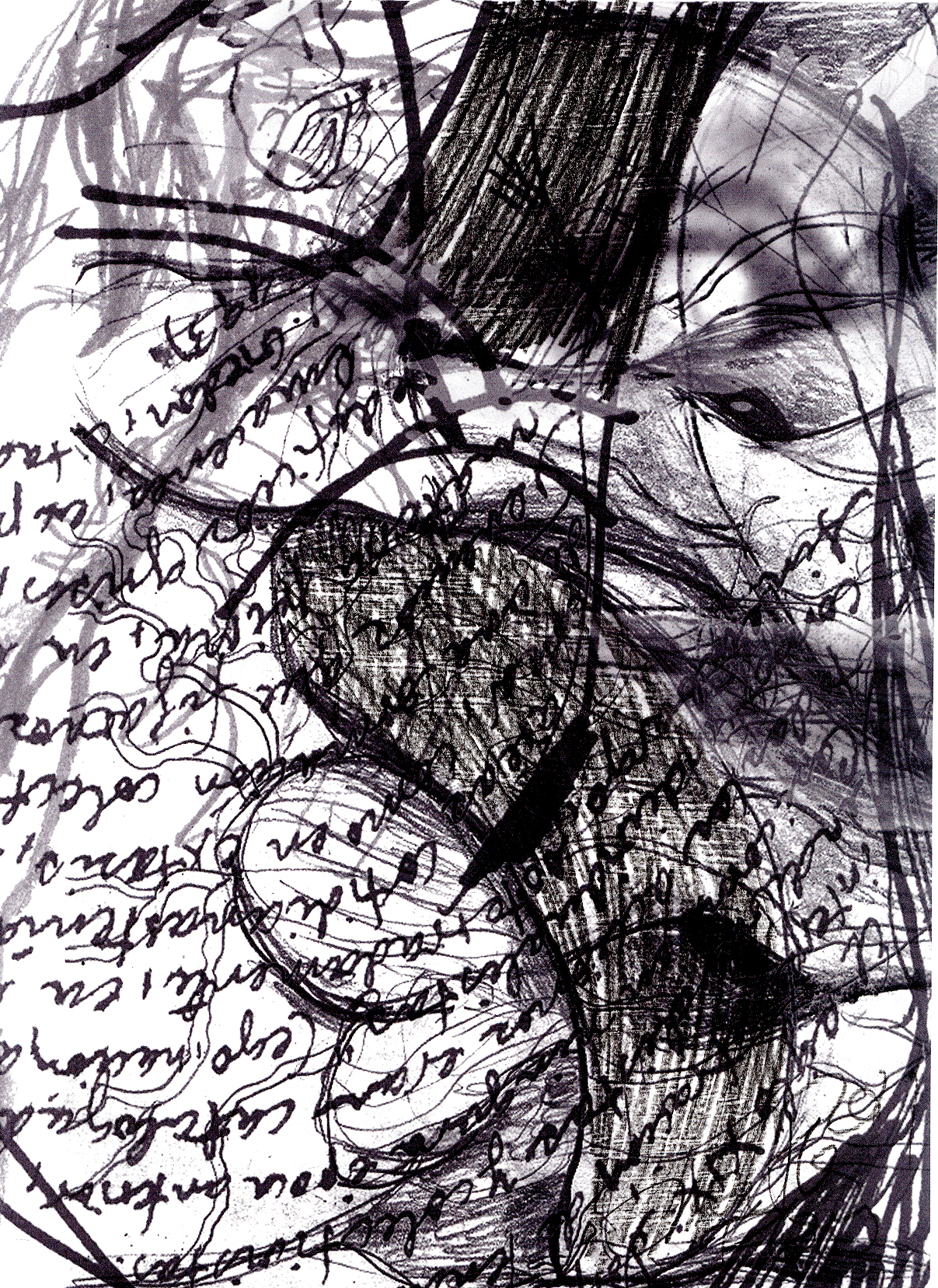 Apuntes en formato digital, parte de la serie "Retratos espirituales". Desfallecer y volver a querer vivir; no encuentro mi rostro; empiezo a buscar, llegaré. Serie de quince autorretratos realizados para la obra "Vuelvo a mí", autorretratos, que se exhibió en la Exposición colectiva de dibujos en la Galería del Pasillo de la UAMX en noviembre de 2011.